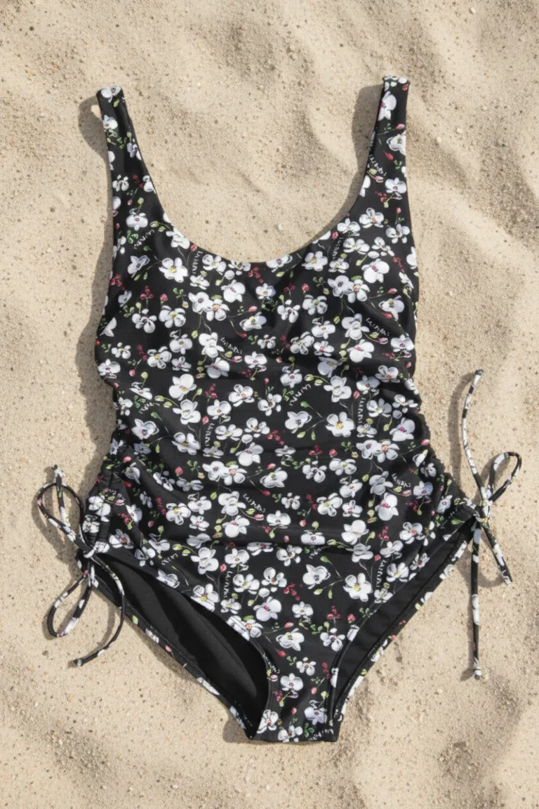 Este traje de baño entero combina un escote redondo y una espalda baja, con frunces regulables en los laterales para un ajuste perfecto. Forrado para mayor confort, y con un encantador charm de flor en la espalda, este modelo canchero y único te hará sentir cómoda y segura en la playa o la pileta.