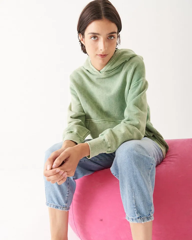 Buzo de estilo relajado con capucha y bolsillo frontal. Diseño de calce amplio con mangas largas, ideal para un look casual y cómodo. Presenta una terminación con efecto lavado que le otorga un estilo distintivo para el uso diario. Versátil y confortable para combinar en cualquier temporada del año.
