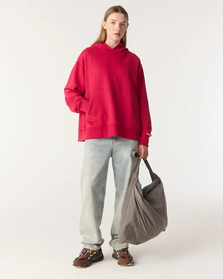 Buzo tipo canguro con capucha, diseño holgado y cómodo ideal para el uso diario. Presenta un bolsillo frontal amplio y un calce relajado que permite libertad de movimiento, combinando funcionalidad y un estilo urbano moderno. Una prenda esencial para completar looks casuales y descontracturados en cualquier temporada.