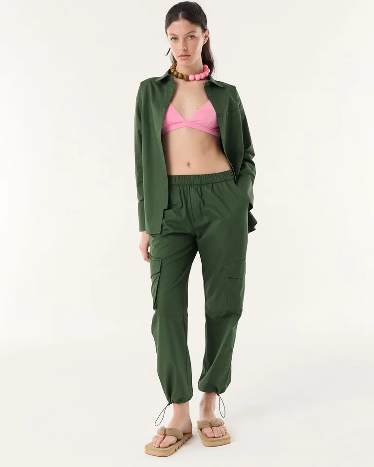 Camisa de mujer con calce holgado, manga larga y diseño funcional con bolsillo delantero. Presenta un ruedo curvo y cierre tradicional mediante botones, ideal para sumar versatilidad a tus conjuntos diarios. Su corte cómodo hasta la cadera permite diferentes usos, ya sea abierta sobre otras prendas o cerrada, adaptándose a diversos estilos.