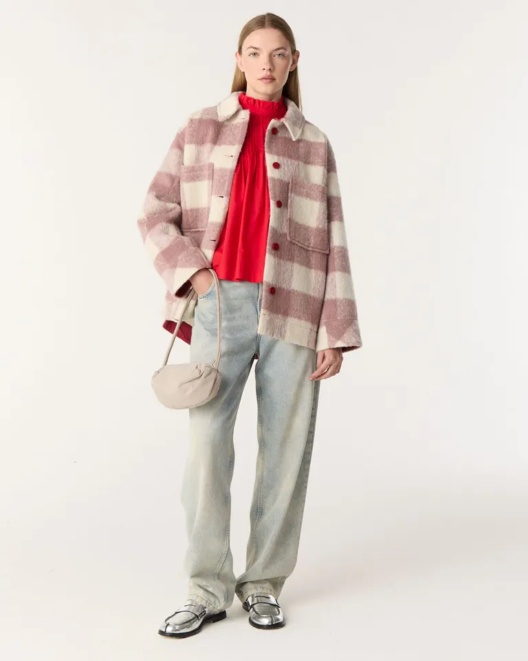 Camisaco de paño con diseño a cuadros, presenta un calce recto con largo a la altura de la cadera. Incluye bolsillos aplicados en el frente y laterales, con cierre frontal de botones y detalle de bordado. Ideal para completar outfits urbanos y versátiles durante el día.