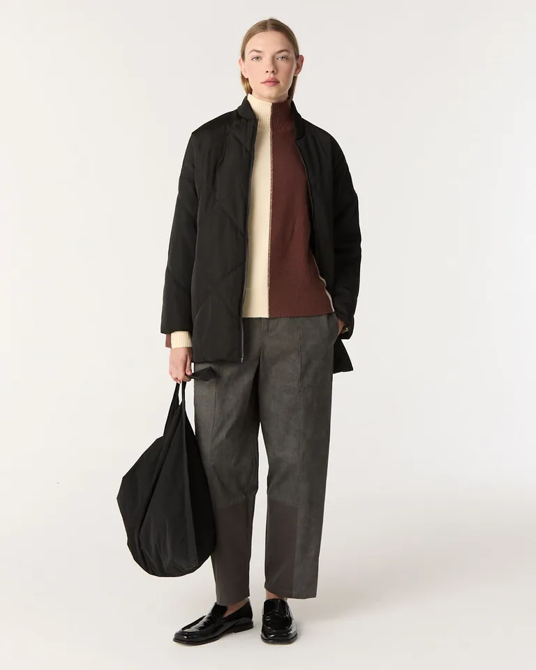 Campera tipo bomber larga con diseño enguatado y calce amplio. Presenta una silueta extendida que cubre por debajo de la cadera, equipada con prácticos bolsillos laterales y cierre frontal. Una prenda versátil y funcional ideal para completar conjuntos urbanos durante los días frescos de temporada.