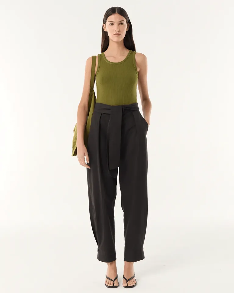 Musculosa de ajuste entallado con cuello redondo, diseñada con un largo que llega hasta la cadera. Presenta detalles de costura al tono en las uniones, ideal para combinar en looks diarios con un estilo simple y versátil.