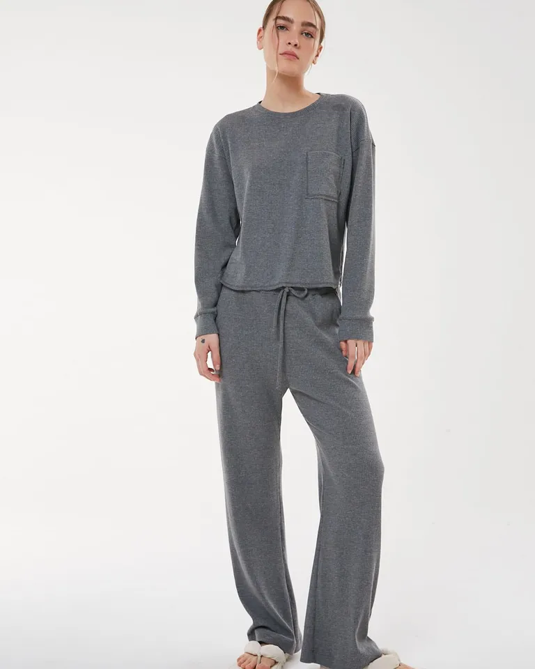 Pantalón de calce amplio con diseño levemente acampanado. Cuenta con cintura elástica ajustable mediante cordón y un bolsillo trasero aplicado. Su diseño cómodo y relajado es ideal para uso diario, ofreciendo un estilo versátil y contemporáneo.
