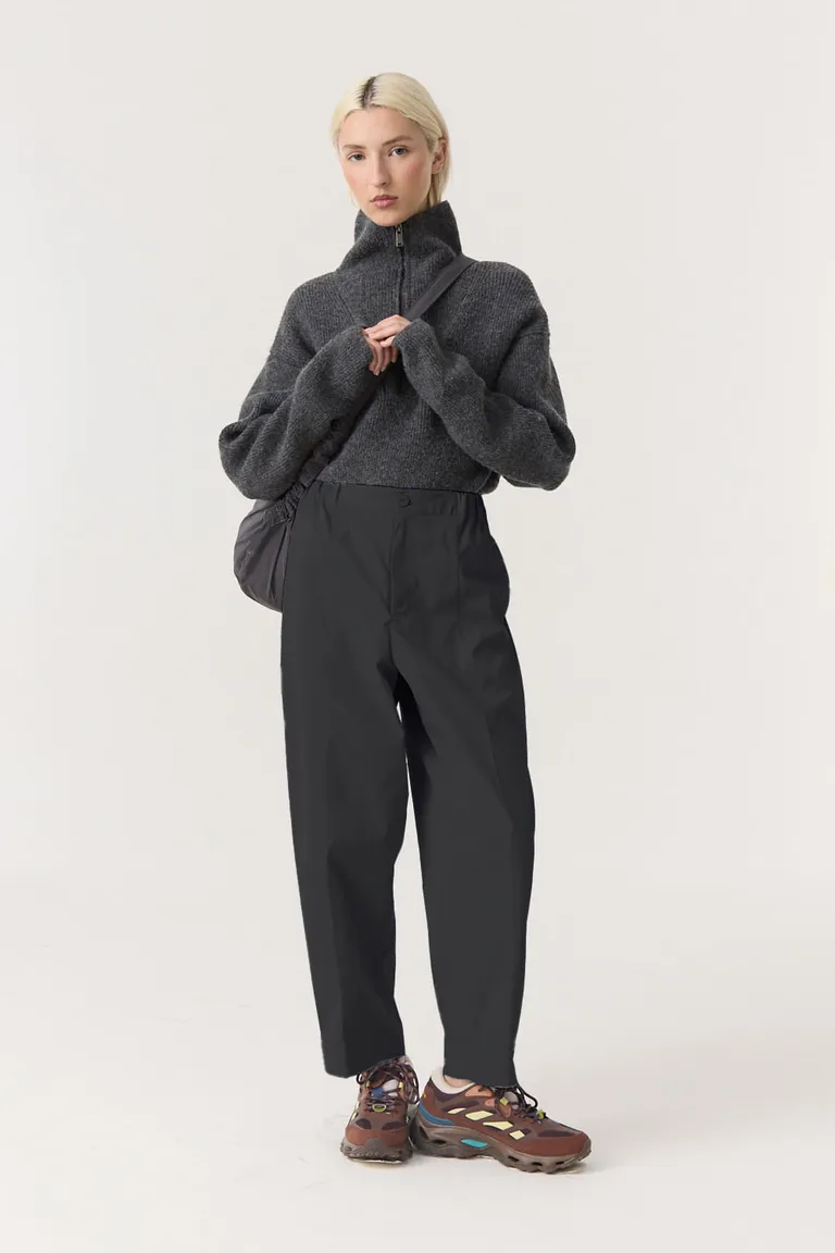 Pantalón de corte recto con diseño amplio, ideal para un estilo urbano y funcional. Presenta bolsillos frontales, cintura elástica y cierre con botón central, ofreciendo comodidad para el uso diario sin resignar un look moderno. Una prenda versátil para combinar con diferentes tipos de calzado y partes superiores.