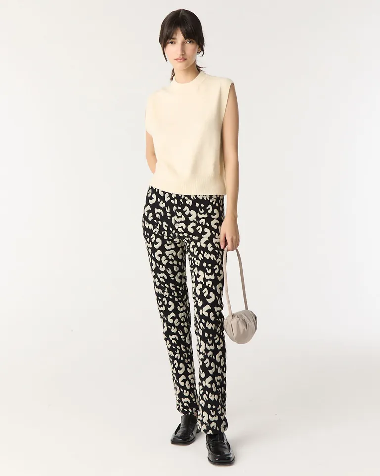 Pantalon de calce recto con estampado animal print. Diseño clásico de tiro medio con cierre oculto y botón, ideal para completar equipos urbanos versátiles. Su corte favorecedor permite combinarlo fácilmente en outfits formales o relajados para el día a día.