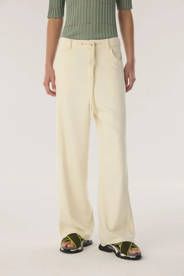 Pantalón de corte amplio con cintura ajustable mediante cordón, diseñado para brindar comodidad y estilo en el uso cotidiano. Presenta un diseño versátil de pierna recta que se adapta a diversas ocasiones, ideal para combinar con prendas superiores de diferentes estilos. Un básico indispensable en el guardarropa femenino para lograr un look relajado y funcional.