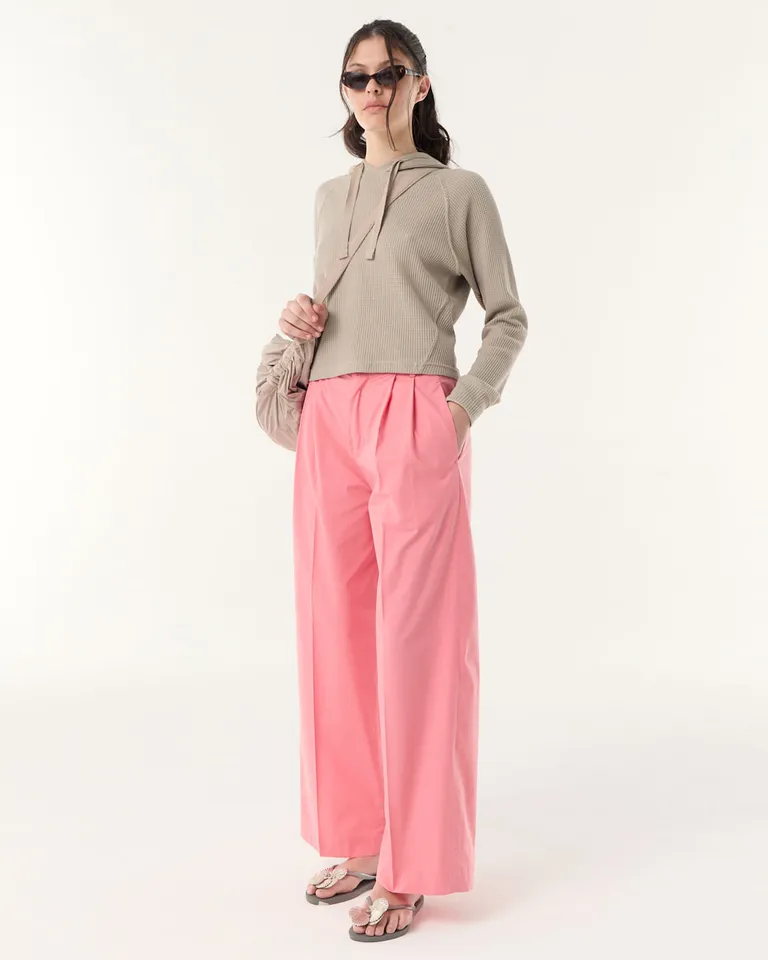 Pantalón de tiro alto con diseño de pinzas, corte amplio y favorecedor hacia el bajo. Incluye bolsillos laterales funcionales y cierre con broche para mayor comodidad en el uso diario. Una prenda versátil ideal para crear combinaciones tanto casuales como urbanas con un estilo moderno y actual.