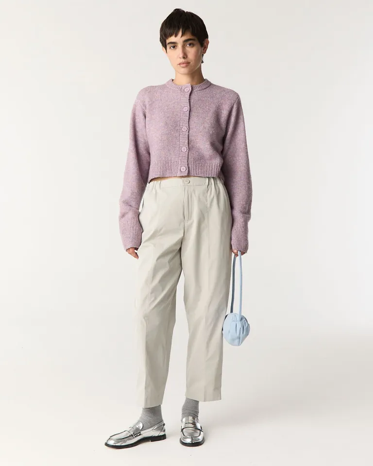 Pantalón de corte recto y holgado con diseño de recortes frontales. Cuenta con bolsillos laterales y cintura elástica, brindando comodidad y funcionalidad. Ideal para armar conjuntos urbanos y versátiles, este diseño se ajusta mediante cierre y botón frontal, integrándose fácilmente en looks casuales o formales para el día a día.