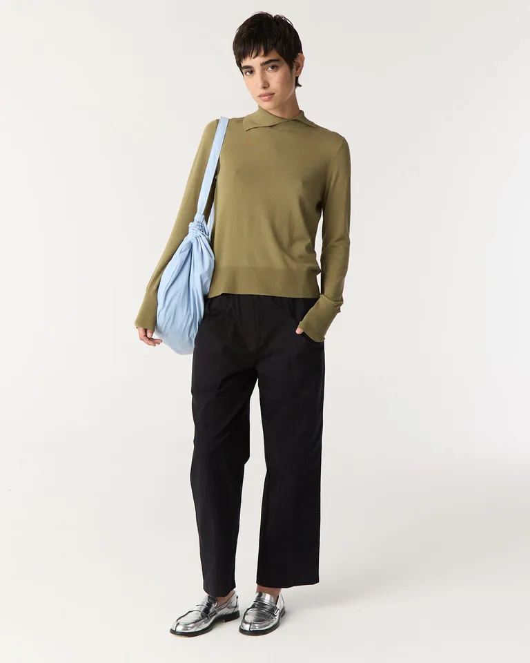 Pantalón recto de gabardina tiro alto con bolsillos laterales y cintura elastizada de Furzai