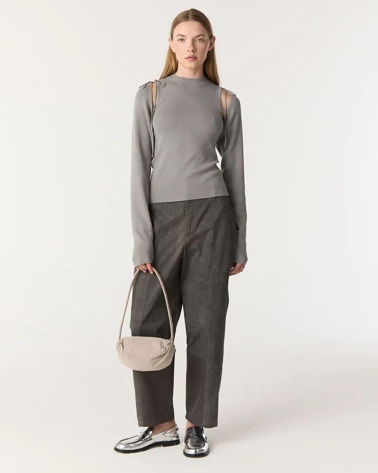 Pantalon de tiro alto con diseño estructurado, cuenta con cierre oculto, sistema de ajuste mediante broches a presión y múltiples bolsillos frontales y traseros. Presenta un corte funcional con detalles en costuras reforzadas y terminaciones precisas, ideal para un look casual y versátil en el día a día. Su diseño permite una cómoda movilidad sin sacrificar la silueta, integrándose perfectamente a diversas propuestas de estilo urbano.