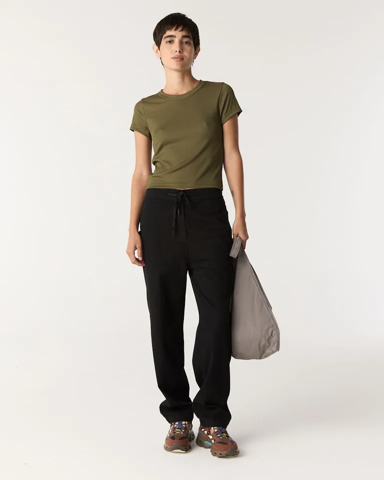 Remera básica de calce entallado con cuello redondo y mangas cortas. Esta prenda de corte clásico llega hasta la altura de la cadera, ideal para combinar en looks diarios. Su diseño versátil y ajuste al cuerpo la convierten en un básico esencial para cualquier guardarropa femenino.