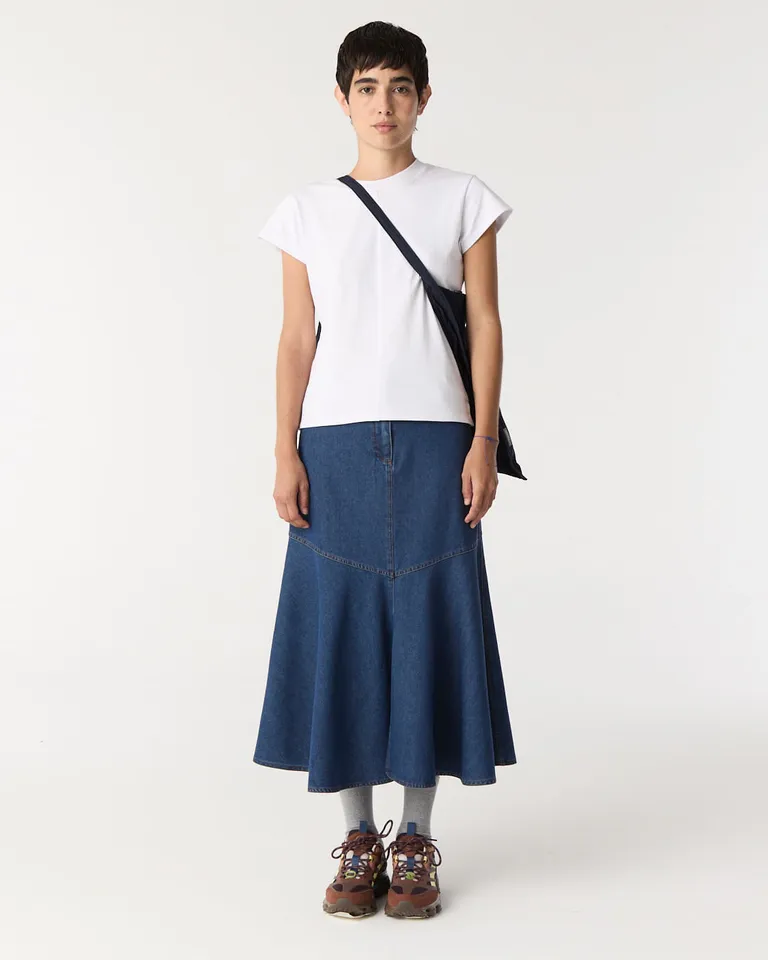 Remera de corte recto y holgado con mangas cortas y cuello redondo. Presenta un diseño versátil ideal para combinar en outfits diarios. Posee un calce cómodo que llega a la altura de la cadera, ofreciendo libertad de movimiento y una estética urbana esencial para el guardarropa femenino.