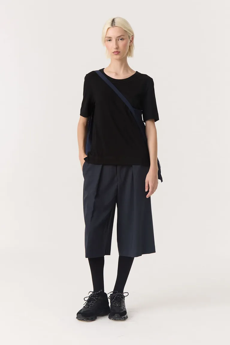 Remera de corte clásico con diseño de manga corta, ideal para complementar conjuntos urbanos versátiles. Presenta una silueta de calce regular con largo a la cadera, ofreciendo comodidad y un estilo esencial para el uso diario en diversas ocasiones.