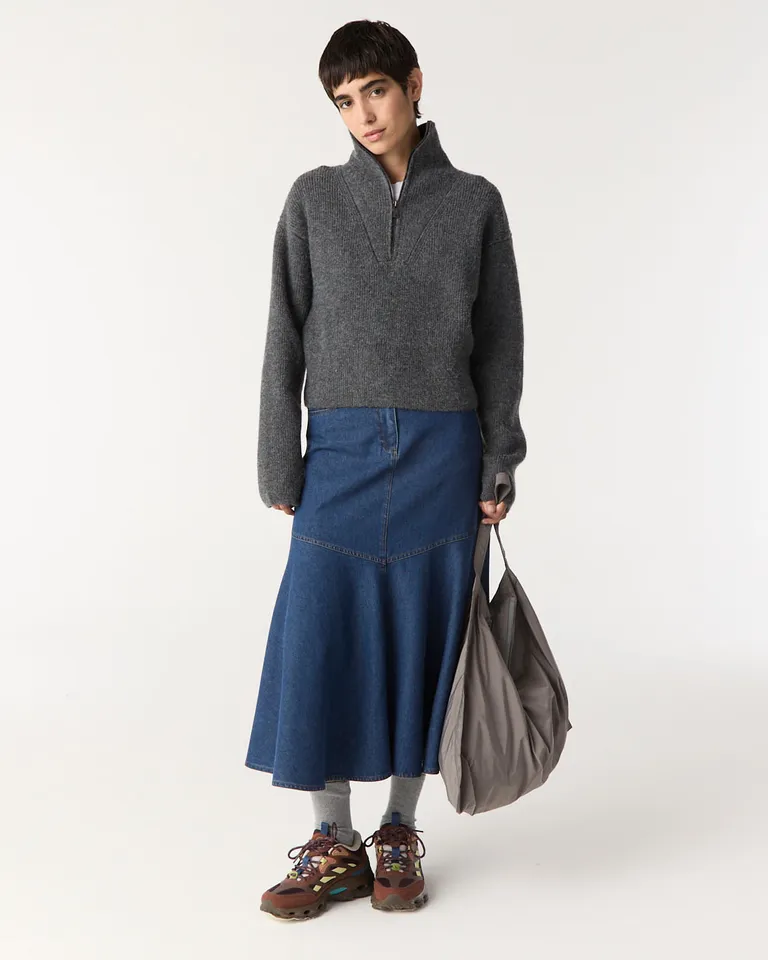 Sweater de calce regular con cuello alto y cierre frontal. Su diseño versátil y cómodo lo convierte en una prenda esencial para el uso diario, combinando funcionalidad y estilo en un corte a la altura de la cadera.