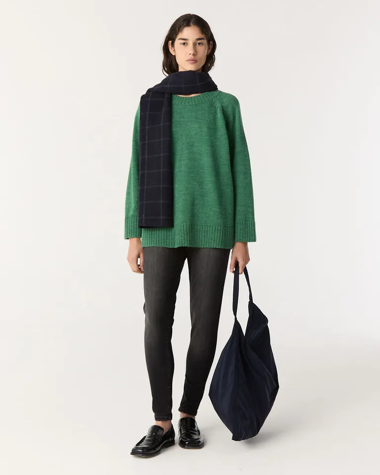 Sweater de punto con cuello redondo, mangas amplias y diseño de calce relajado. Ideal para un estilo casual y cómodo durante los días de clima fresco, cuenta con aberturas laterales y una caída que llega a la segunda cadera, brindando versatilidad para combinar en diversos outfits cotidianos.