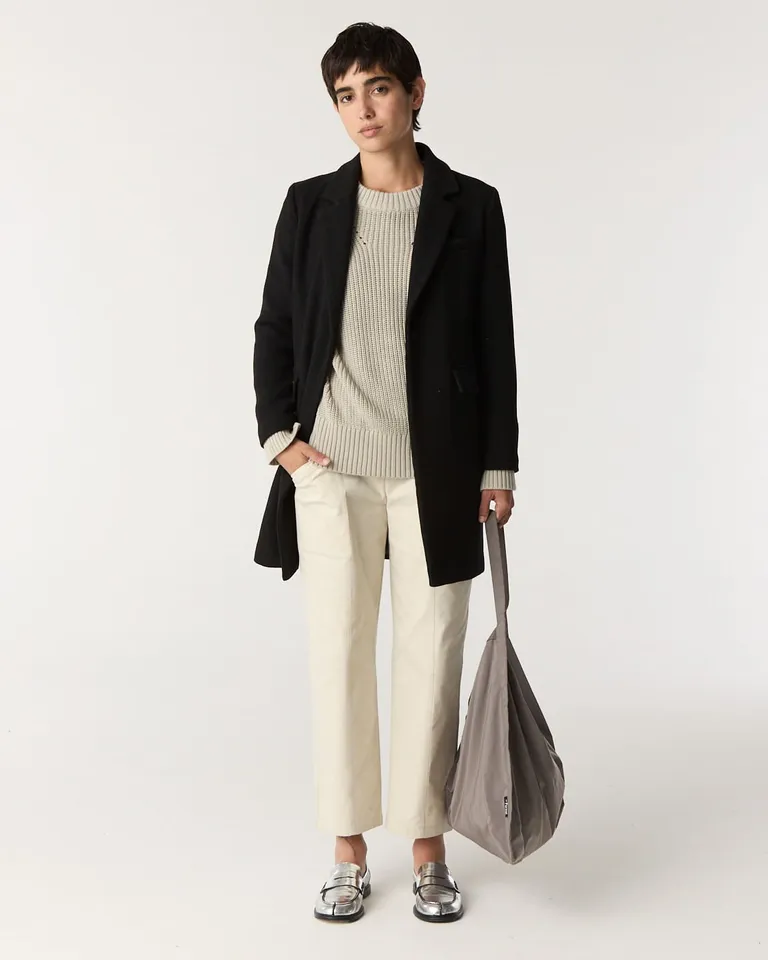 Abrigo de paño con diseño de corte clásico, ideal para completar tus looks de media estación o invierno. Presenta un estilo versátil con bolsillos frontales y un largo funcional por debajo de la segunda cadera, ofreciendo una silueta recta y equilibrada. Una prenda esencial para quienes buscan una opción elegante, cómoda y fácil de combinar en el día a día sin resignar estilo.