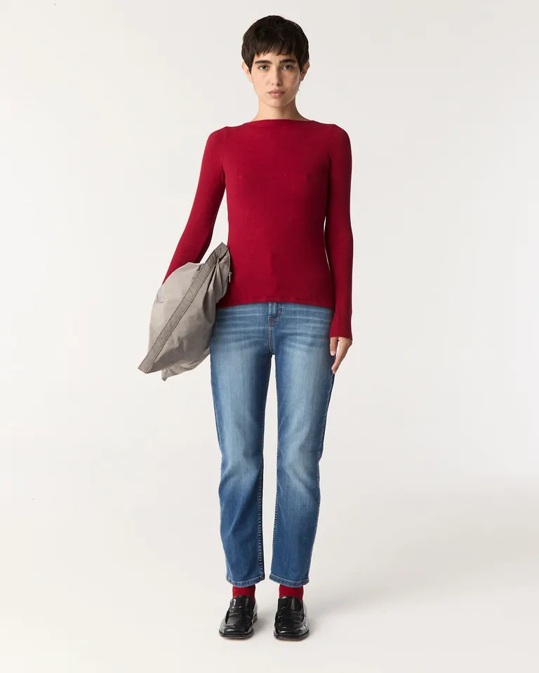 Top de mujer con escote bote y detalle de abertura drapeada en la espalda de Furzai