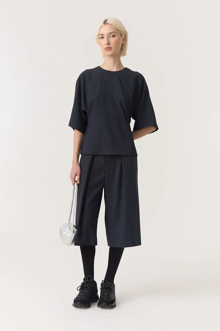 Top de corte sastrero con diseño de mangas amplias y sisa cuadrada. Presenta un calce estructurado y cierre en la parte posterior, ideal para crear conjuntos coordinados con prendas de sastrería. Una pieza versátil y minimalista para integrar en outfits urbanos o formales con un toque moderno.