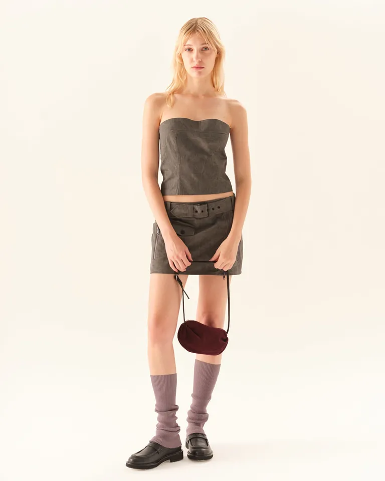 Top strapless de calce ajustado al cuerpo con detalle de pinza horizontal en el busto. Cuenta con un cierre semi oculto en la parte posterior para un ajuste cómodo y moderno, ideal para completar looks urbanos con estilo y versatilidad.