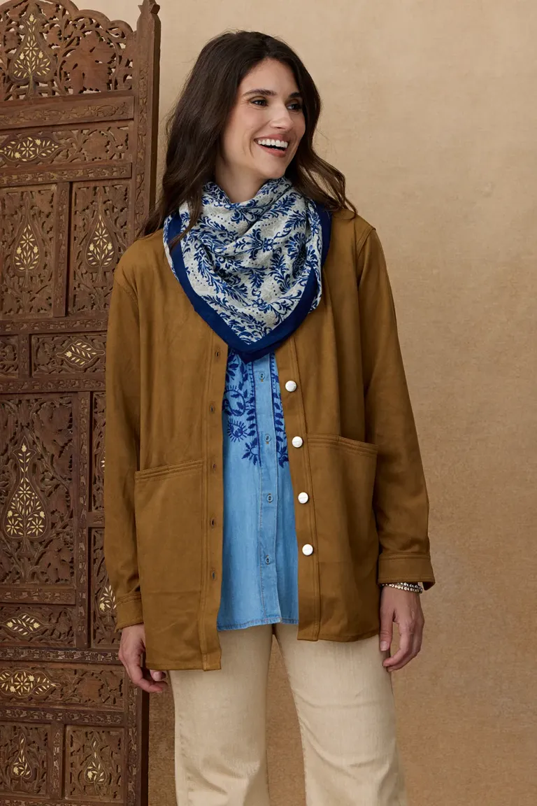 Chaqueta de diseño versátil con botones frontales, cuello camisero y bolsillos delanteros amplios. Una prenda ideal para usar como capa liviana durante los días de media estación. Presenta un calce cómodo y funcional que se adapta a diversos estilos diarios. Perfecta para combinar con pantalones y blusas, aportando un toque clásico y sofisticado a cualquier conjunto de temporada.