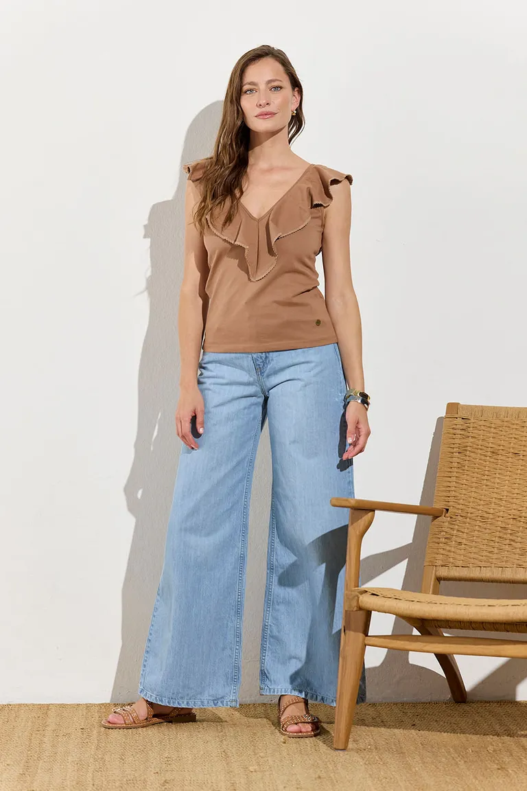 Remera sin mangas con escote en V y volados de Indiastyle