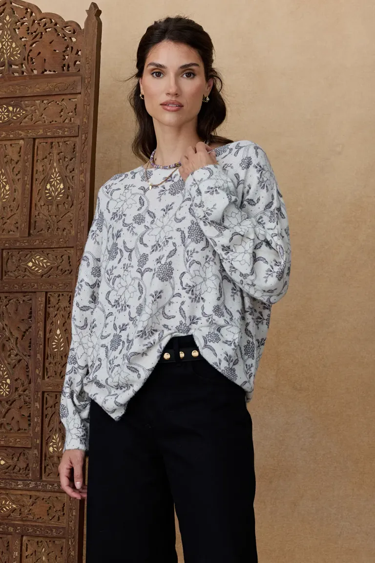 Sweater de mujer con escote redondo y diseño floral estampado de Indiastyle