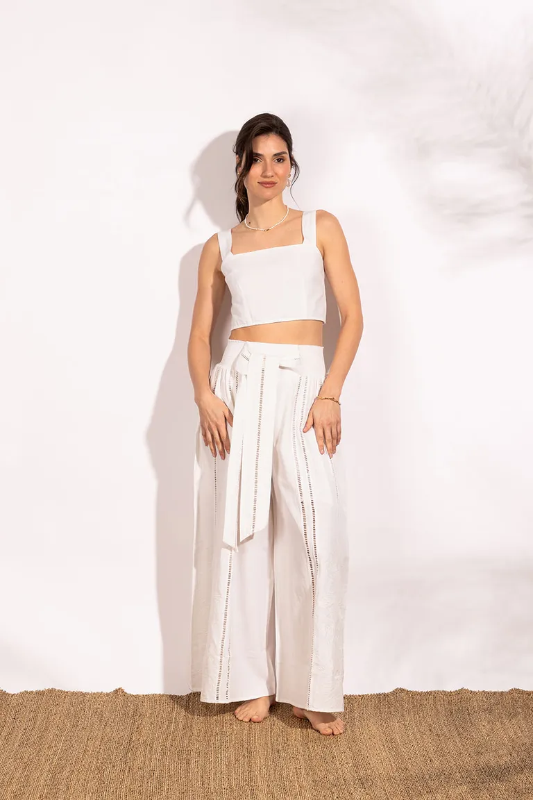 Top corto de corte sencillo y fresco, ideal para combinar en looks veraniegos. Presenta un diseño minimalista con escote cuadrado y tirantes anchos, ofreciendo una opción versátil y cómoda para diversas ocasiones. Una prenda fundamental para renovar el guardarropa de temporada con estilo y sencillez.