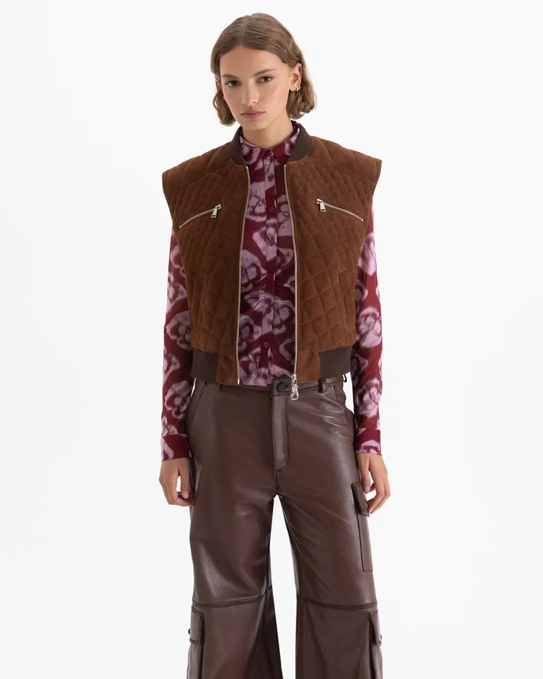 Chaleco de estilo matelaseado que aporta una textura distintiva a cualquier conjunto. Cuenta con detalles de puño tejido en el cuello y la cintura, ofreciendo un ajuste cómodo y moderno. Es una prenda versátil ideal para completar capas en diferentes ocasiones, brindando un equilibrio entre funcionalidad y diseño contemporáneo. Perfecto para quienes buscan sumar una pieza con carácter a su guardarropa diario sin complicaciones.