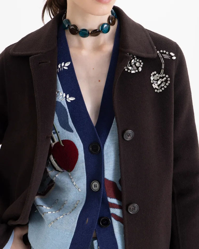 Chaqueta de corte clásico con detalles de bordado con piedras decorativas en la parte superior. Esta prenda cuenta con cierre frontal mediante botones grabados, ideal para completar equipos formales o informales en cualquier ocasión. Su diseño estructurado y elegante permite versatilidad al combinarla con diversas capas, cardigans o prendas inferiores, brindando un acabado sofisticado a tu estilo diario.