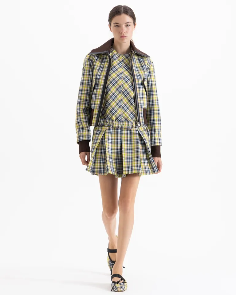 Chaqueta de corte cropped con diseño a cuadros, ideal para combinar en diferentes outfits. Cuenta con cuello, puños y ruedo con terminaciones en tejido de contraste, además de bolsillos con tapa y detalles frontales. Una prenda versátil que aporta estilo y estructura, adecuada para diversas ocasiones en el día a día, ofreciendo un calce cómodo y funcional para quienes buscan renovar su guardarropa con un ítem distintivo.