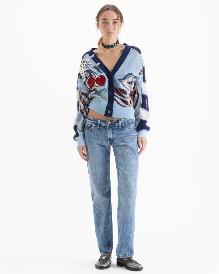 Jeans de tiro bajo con calce recto, diseñados con un lavado que presenta contrastes marcados para un estilo casual y versátil. Su corte clásico se adapta a diversas ocasiones, ofreciendo una opción funcional para el uso diario en diferentes contextos urbanos.