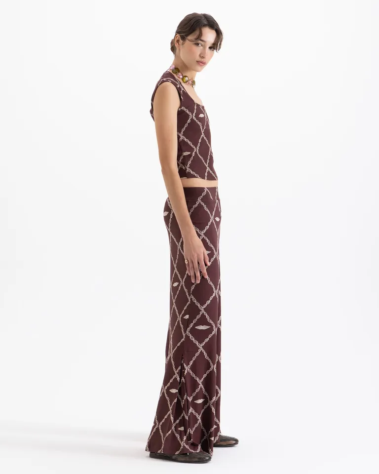 Pantalon largo de calce amplio con cintura elastizada y diseño estampado integral. Presenta una silueta fluida con detalle de tabla en la botamanga que brinda mayor soltura y comodidad al caminar. Una prenda versátil ideal para combinar en diversos outfits casuales o formales, ofreciendo un ajuste cómodo gracias a su elástico en la cintura.