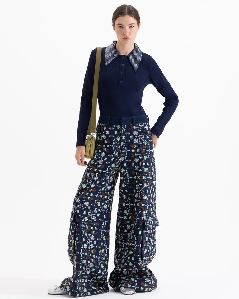 Pantalón de silueta amplia con diseño de piernas holgadas y bolsillos cargo laterales. Presenta una estructura versátil y contemporánea con detalle de pretina integrada. Una prenda que destaca por su diseño y movimiento, ideal para crear conjuntos urbanos. Combina perfectamente con diversas partes superiores para un look distinguido y funcional.