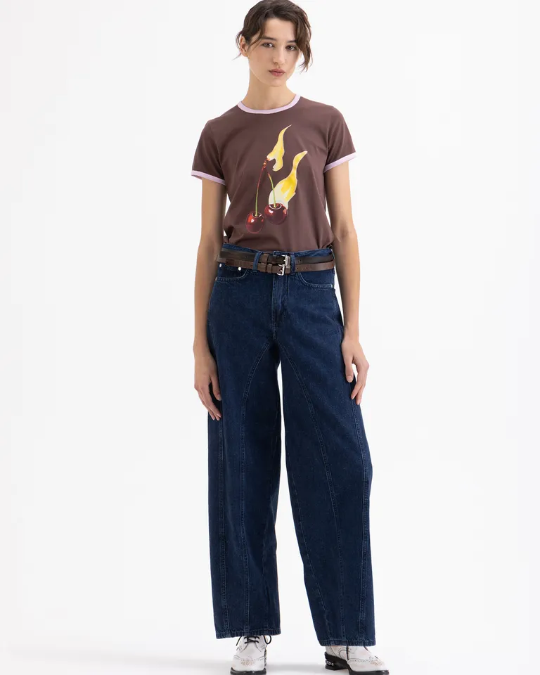 Pantalones de corte slouch con recortes curvos y diseño versátil para usar tiro alto o relajado. Incorporan un sistema de ajuste trasero con hebilla y arandelas que permiten personalizar la silueta. Una prenda diseñada con líneas modernas, ideal para incorporar en diversos estilos urbanos. Cuenta con una estructura fluida que brinda comodidad durante todo el día.