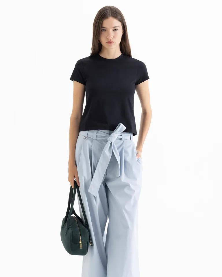 Remera de corte clásico con mangas cortas y cuello redondo. Presenta un ajuste regular que brinda comodidad, ideal para combinar en diversos conjuntos. Incluye detalle bordado en la parte posterior.