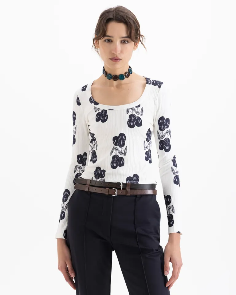 Remera de corte al cuerpo con mangas largas y escote redondo, presentando un diseño estampado. Esta prenda versátil se adapta a diversas ocasiones, ideal para crear conjuntos en capas o usar sola. Su diseño se caracteriza por la comodidad y el ajuste que favorece la silueta, convirtiéndose en una opción esencial para el uso cotidiano en cualquier temporada del año.