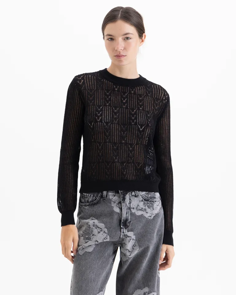 Sweater de tejido calado con diseño de texturas y mangas largas de corte recto de Jazmin Chebar