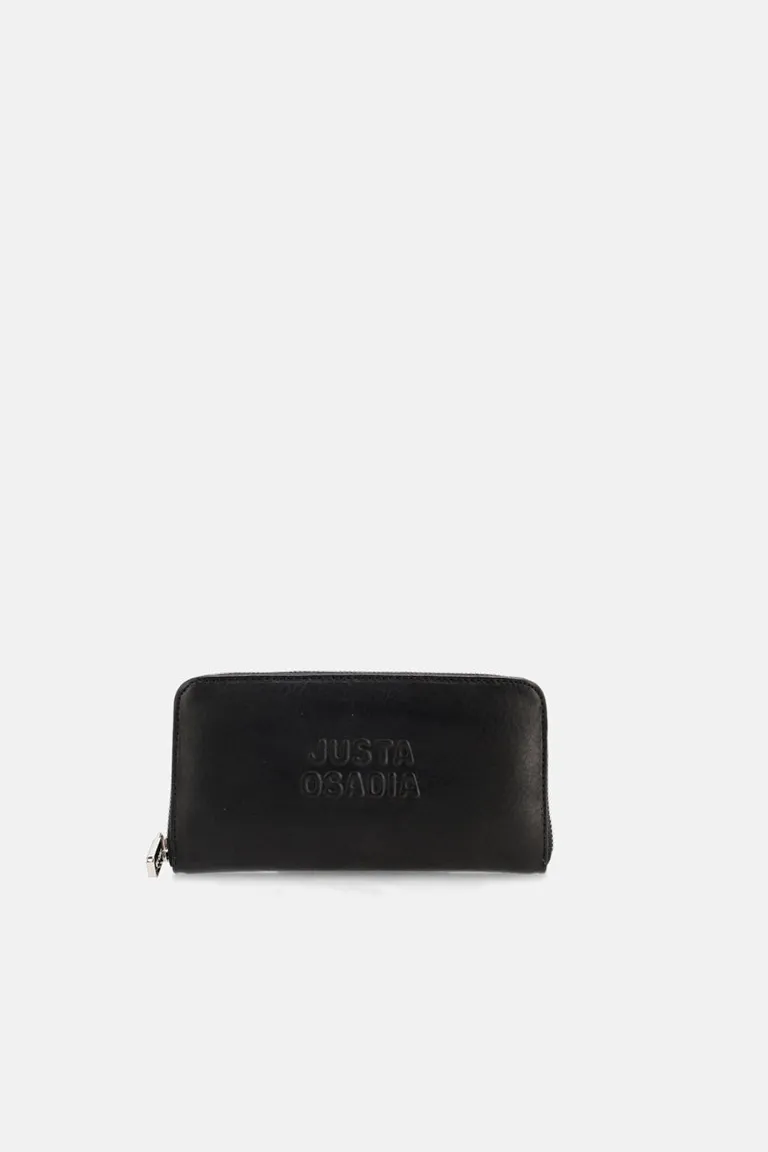 Billetera rectangular de diseño clásico con cierre perimetral metálico para mayor seguridad. Presenta un grabado en relieve con el logo de la marca en el frente. Un accesorio funcional y elegante para organizar tus elementos esenciales con estilo y comodidad en tu día a día.
