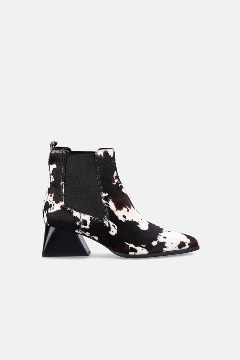 Bota estilo Chelsea con diseño de caña baja y paneles elásticos laterales para un calce sencillo. Presenta un diseño de superficie con textura y estampado que aporta un toque distintivo a cualquier look. Cuenta con un taco geométrico que brinda estabilidad y modernidad. Una opción versátil y de tendencia para complementar outfits urbanos con un acabado impecable y un calce cómodo para el día a día.