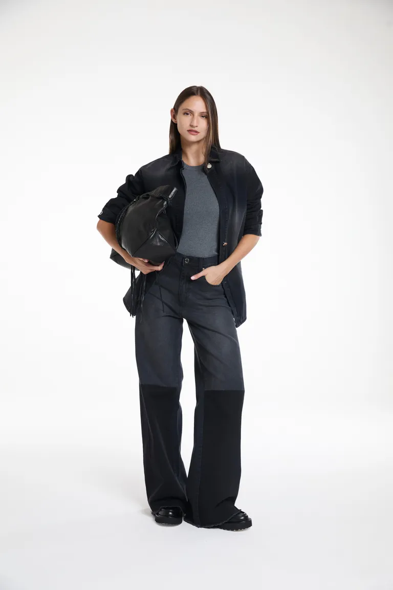 Pantalón de corte recto con diseño de pierna amplia. Presenta un estilo versátil con paneles en contraste de tono que aportan textura y un acabado moderno. Posee cierre frontal y bolsillos laterales, ideal para completar outfits urbanos y funcionales. Su estructura brinda una caída definida, adaptándose a diversas propuestas de estilo diario con total comodidad.