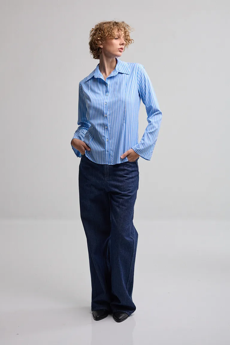 Camisa de mujer con diseño a rayas verticales de mangas largas y cuello clásico de Kill