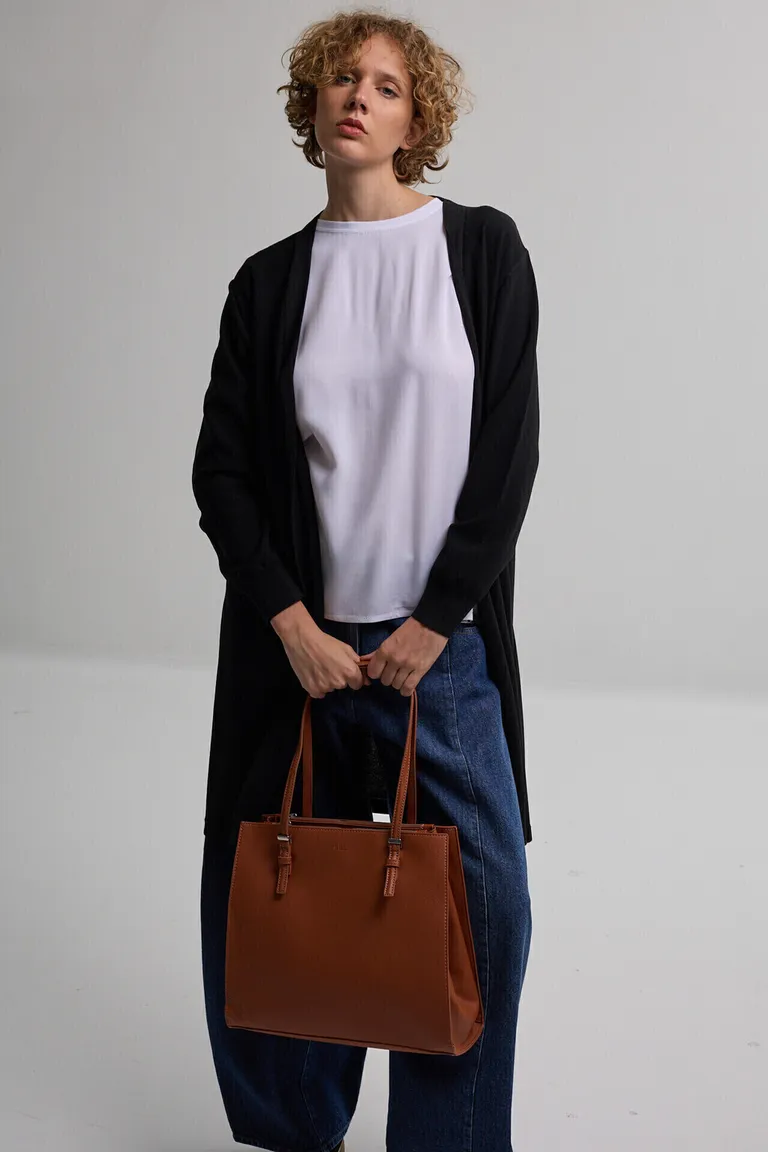 Cartera de diseño versátil ideal para completar un look diario. Cuenta con un compartimento principal amplio, doble manija de agarre para mayor comodidad y una estructura firme que mantiene su formato. Un accesorio funcional y atemporal para organizar tus pertenencias con estilo.