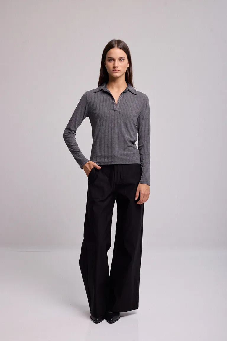Remera de manga larga con cuello estilo polo, diseñada con un calce ajustado al cuerpo. Esta prenda es ideal para lograr looks urbanos y versátiles en el día a día. Posee un diseño sencillo y funcional que se adapta fácilmente a diversas combinaciones de outfits, brindando comodidad durante toda la jornada. Perfecta para completar tu guardarropa con una pieza básica y contemporánea.