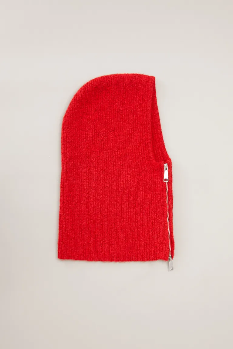 Balaclava de diseño tejido con cierre metálico lateral. Este accesorio proporciona una cobertura integral y un ajuste cómodo, ideal para completar equipos durante las jornadas de temperaturas bajas con un estilo funcional y contemporáneo.