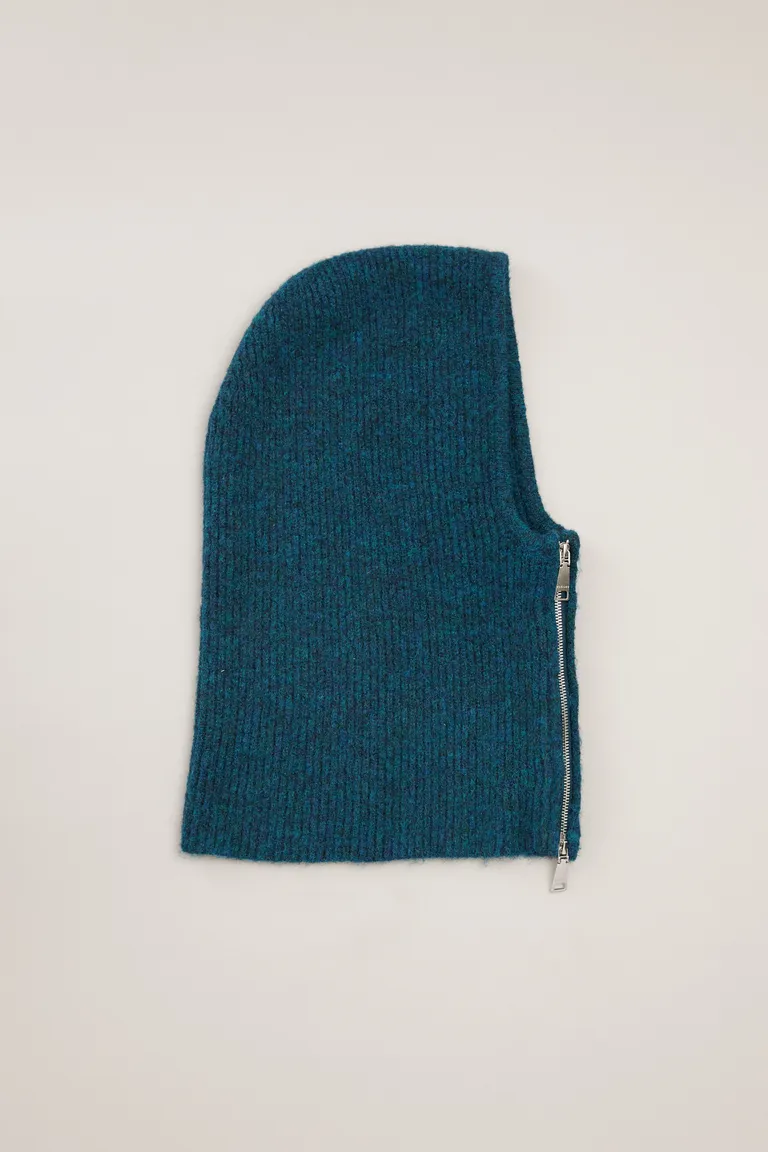 Balaclava con diseño de punto tejido, ideal para complementar conjuntos de invierno. Presenta un cierre lateral metálico que permite un ajuste práctico y funcional, brindando cobertura y abrigo para el rostro y cuello. Un accesorio esencial para los días de temperaturas bajas.