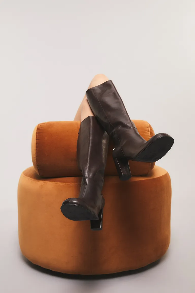 Botas de caña alta con diseño de punta redondeada y taco estructurado, ideales para complementar diferentes estilos. Este calzado se destaca por su formato clásico y cómodo, pensado para el uso cotidiano, aportando versatilidad y elegancia a cualquier conjunto de temporada.