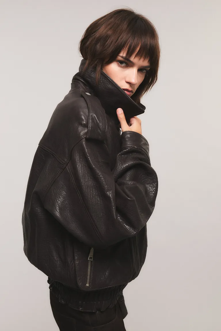 Campera de diseño oversize con silueta amplia y largo hasta la cadera. Presenta un corte con cierre asimétrico, bolsillos frontales funcionales con cierre y detalle de broches personalizados. Ideal para complementar cualquier conjunto urbano con un estilo distintivo y funcional.