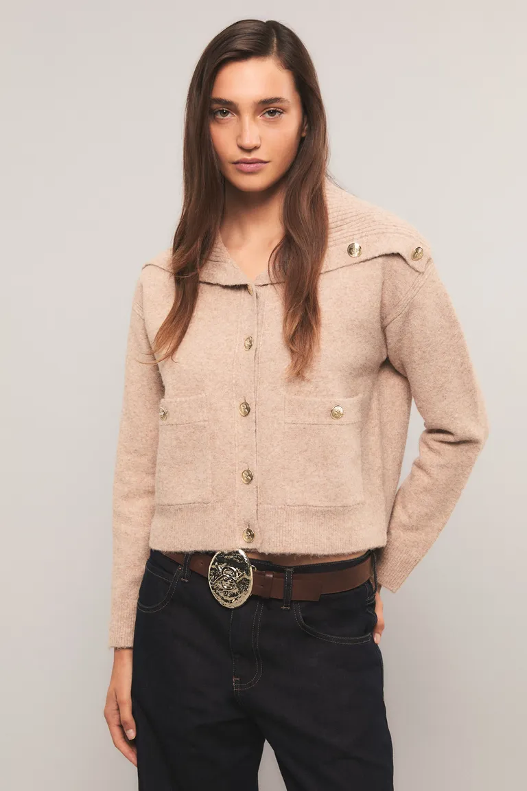 Cardigan de tejido suave con cuello alto, cierre frontal con botones y bolsillos delanteros. Presenta un diseño de calce regular ideal para combinar en diferentes outfits, aportando comodidad y estilo en el uso diario. Una prenda versátil con detalles cuidados en su confección, diseñada para brindar una capa extra de abrigo sin perder la ligereza.