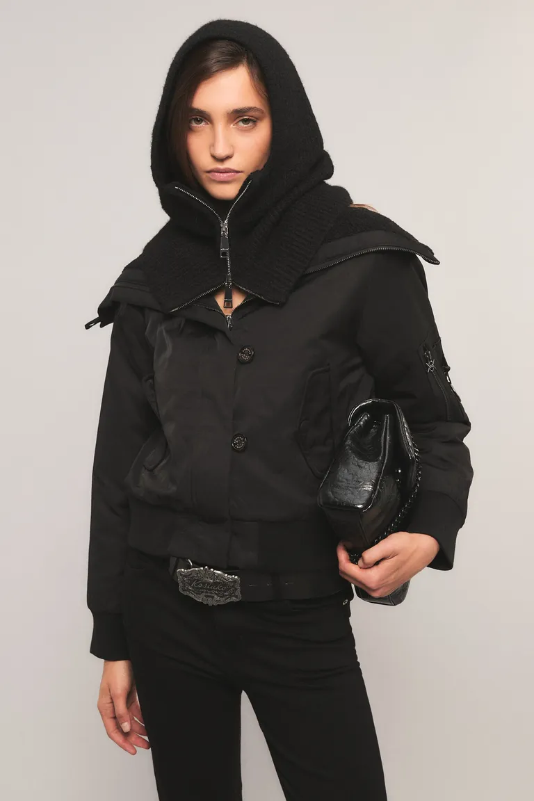 Chaqueta bomber de estilo utilitario con calce regular y largo a la cintura. Presenta un diseño versátil que incluye cuello amplio, cierre frontal y solapa con botones, además de bolsillos laterales funcionales. El detalle de puños y cintura de rib junto al bolsillo con cierre en la manga aportan una estética moderna y funcional ideal para completar tus outfits diarios.